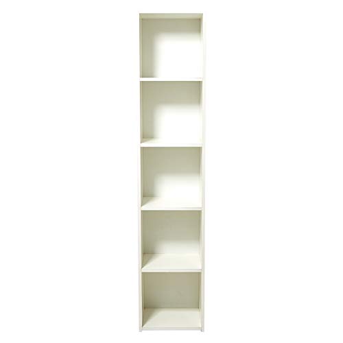 AFT - رف خشبي عالي للكتب مع 5 ارفف من ايه اف تي، باللون الابيض، مفروك بالزيت