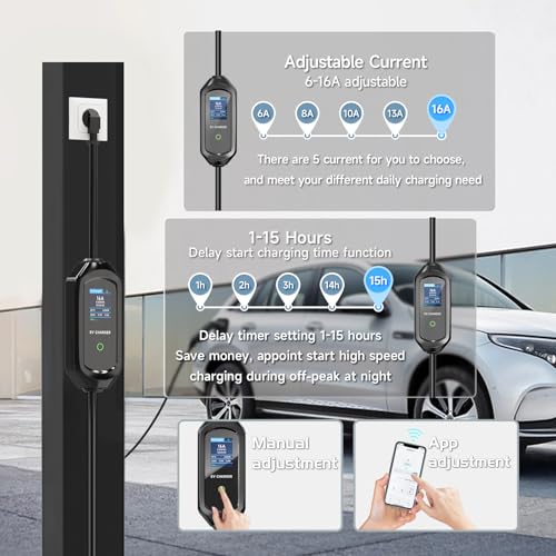 - وضع الشحن السريع: التيار القابل للتعديل لشاحن السيارة الكهربائي الخاص بنا هو 6/8/10/13/16 امبير، وطاقة الخرج 3.6 كيلو واط، أسرع من الشواحن التقليدية. يمكنك اختيار التيار وفقًا لحالة البطارية والمركبة. ملاحظة: لا يمكن تغيير التيار أثناء الشحن.
