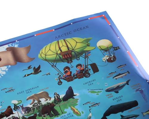 - خريطة حائط مغلفة كبيرة 1.01 م × 69 سم تعرض بشكل واضح النباتات والحيوانات العالمية مع تحديد دقيق لأماكن الحيوانات.