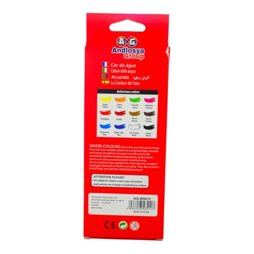 Generic - مجموعة الوان مائية من ايه جي، 6 مل، 12 قطعة - متعددة الالوان