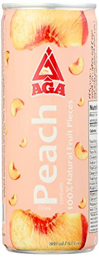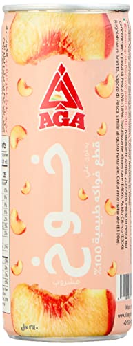 AGA - مشروب خوخ طبيعي بقطع فاكهة ، 12 علبة - 240مل