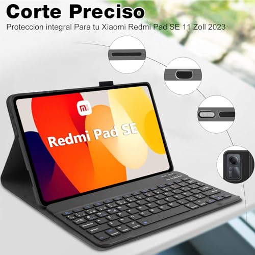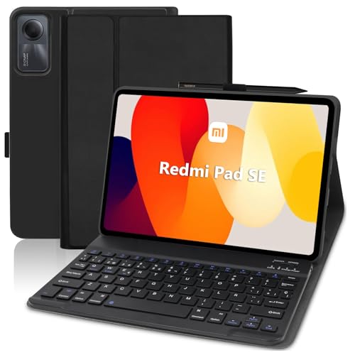 AGARELE - جراب حماية ذكي للوحة المفاتيح رفيع جدا من الجلد بقفل مغناطيسي خاص بجهاز شاومي من اجريل، غطاء واقي بتصميم كيبورد نوع كويرتي متوافق مع جهاز شاومي ريدمي باد اس اي بشاشة 11 بوصة موديل 2023، لون أسود