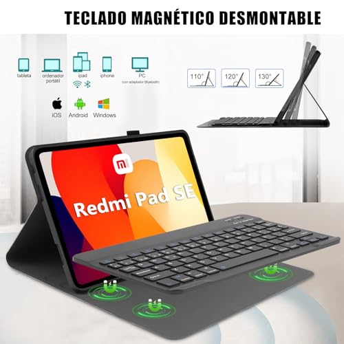 - [ خاصية النوم والاستيقاظ التلقائي] كيبورد بلوتوث إسباني مع ريدمي باد اس اي 11 حافظة تعمل وظيفة النوم/الاستيقاظ التلقائي المغناطيسية بسلاسة، والنوم عند فتح الغطاء أو إغلاقه، سهل التشغيل وموفر للطاقة. تتيح الفتحات الدقيقة الوصول الكامل إلى جميع المنافذ وأجهزة الاستشعار ومكبرات الصوت والميكروفونات والكاميرات.