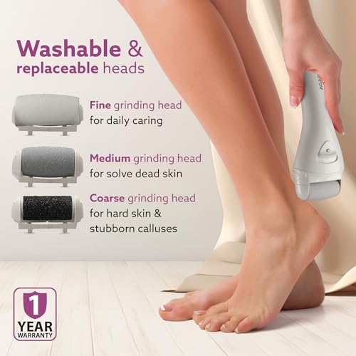 AGARO - جهاز إزالة الجلد الميت مع 3 بكرات رأس قابلة للتبديل من اجارو، قابل لإعادة الشحن للعناية بالقدم، جهاز باديكير، إزالة الجلد الميت والكالو، موديل CR3001