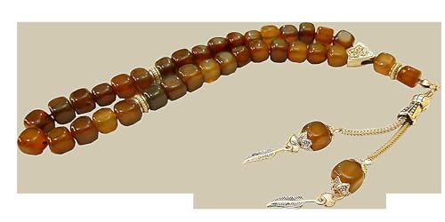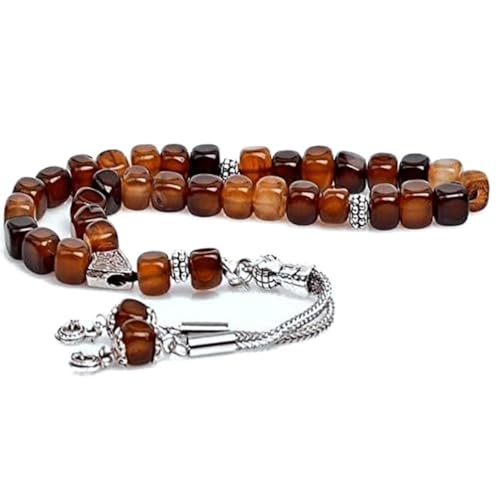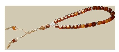 Other - سبحه عقيق بني 33 حبه مطليه فضي 7 مم، للجنسين