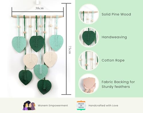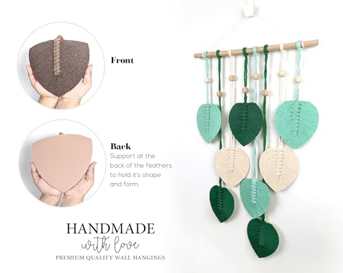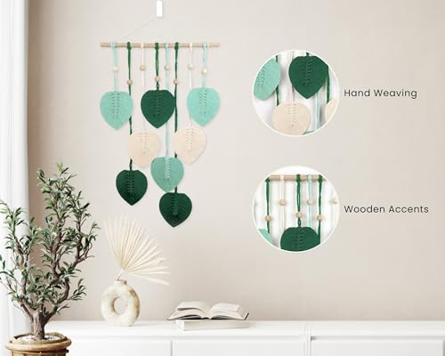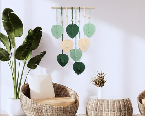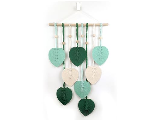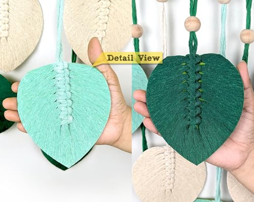 - تصميم مصنوع يدويًا: لوحة فنية جدارية مكرمية جميلة تتميز بـ 8 أوراق منسوجة يدويًا باللون الأخضر الفاتح والأخضر الغابي والألوان البيضاء الطبيعية / الكريمية مع لمسات خرز خشبية