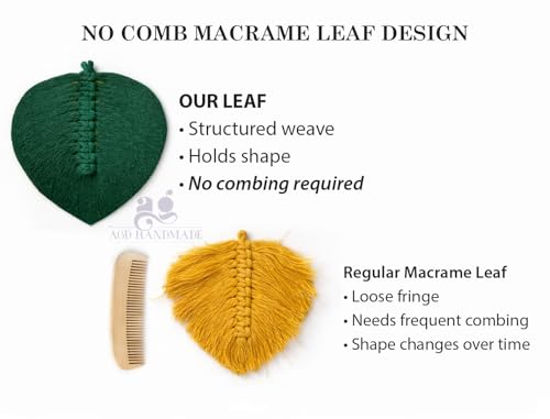 AGD Handmade - مكرمية معلقة على الحائط مصنوعة يدويا من ايه جي دي، تصميم اوراق ريشة خضراء، ديكور فني جداري بوهو انيق مع خرز خشبي (8 اوراق، 75 × 38 سم)