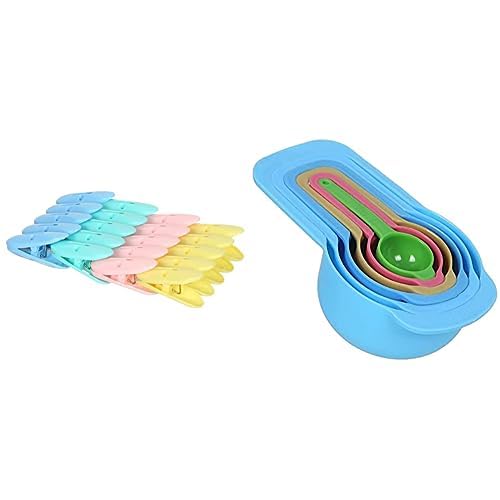 AGFA - مشابك غسيل بلاستيكية 20 قطعة متعددة الألوان + طقم أوعية قياس التوابل بلاستيكية 6 قطع متعددة الألوان من اجفا