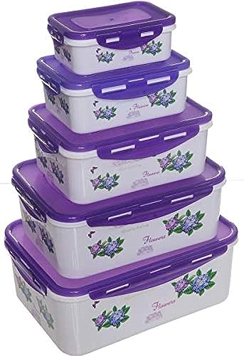 Agfa - طقم علب حفظ طعام بلاستيك من اجفا، 5 قطع - ابيض وارجواني