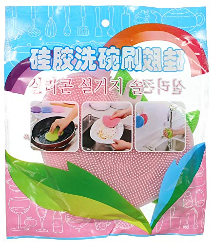 Agfa - ليفة تنظيف مواعين سيليكون وجهين من اجفا، قطعتين - زهري واخضر