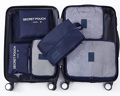 Aggroot - مجموعة شنط سفر منظمة للملابس من اجروت، مجموعة من 6 قطع، مجموعة مكعبات تعبئة للملابس، شنطة ظهر مكعبة الشكل، شنطة احذية، شنطة تخزين مقاومة للماء، شنطة تخزين خفيفة الوزن، البوليستر، أزرق داكن