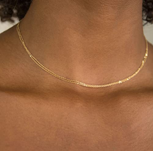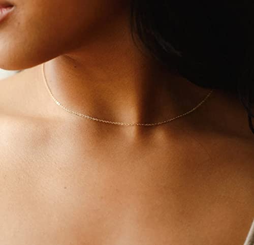 Aghfacy - سلسلة ذهبية رفيعة انيقة من اجفاسي عيار 14 قيراط بتصميم حبل رفيع بسيط قصير قصيرة للنساء هدية مجوهرات مطلية بالذهب بدون احجار كريمة