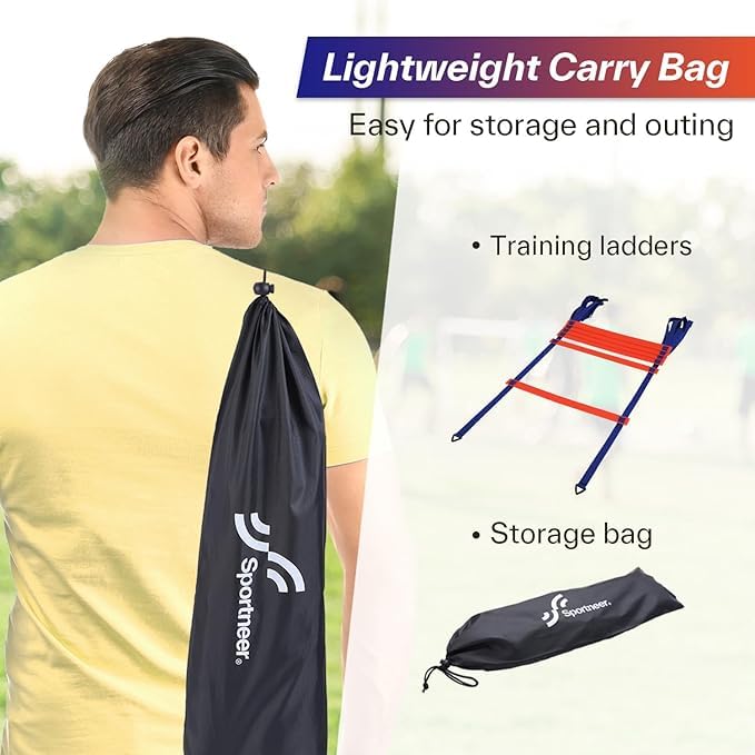 - مجموعة واسعة من الاستخدامات: إذا كنت رياضيًا أو مشجعًا رياضيًا تريد أن تكون أكثر رشاقة، فإن معدات كرة القدم ذات سلم الرشاقة من سبورتنير هنا من أجلك! يعمل تدريب الرشاقة على تحسين سرعة قدمك والسرعة الجانبية وخفة الحركة والتنسيق والتوازن العام