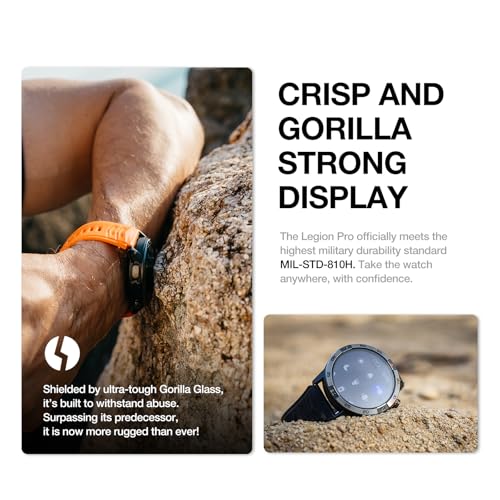 AGM - ايه جي ام ساعة ذكية ليجن برو راجد مع نظام تحديد المواقع وخرائط غير متصلة بالانترنت، شاشة اموليد 1.4 انش، اكثر من 100 وضع رياضي، مقاومة للماء حتى عمق 50 متر، تتبع الصحة والنوم على مدار 24/7، بطارية