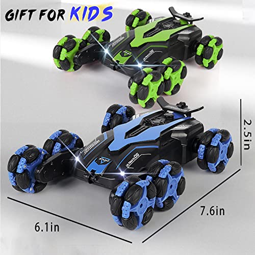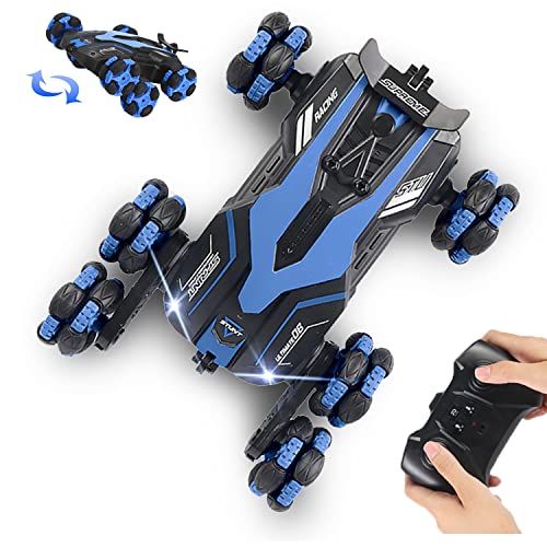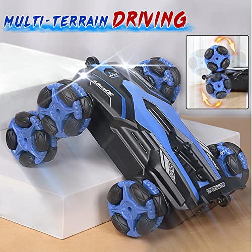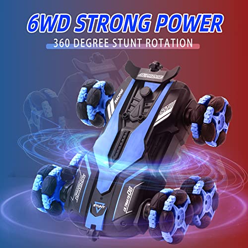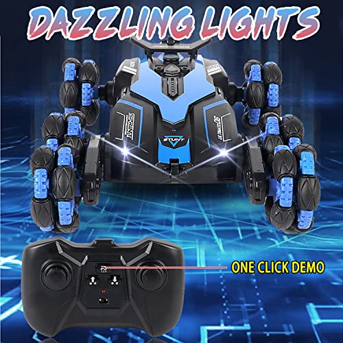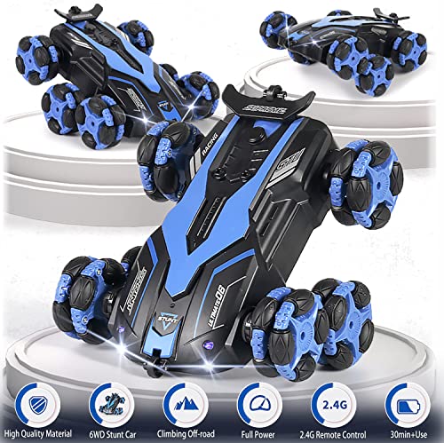 AGNEVE - سيارات بهلوانية بجهاز تحكم عن بعد بـ6 عجلات من اجنيف، سيارة بهلوانية 2.4 جيجاهرتز قابلة للدوران 360 درجة مع مصابيح أمامية ليد، زاحفة للطرق الوعرة، بطاريتان للعب لمدة 60 دقيقة للأولاد والبنات (أزرق)