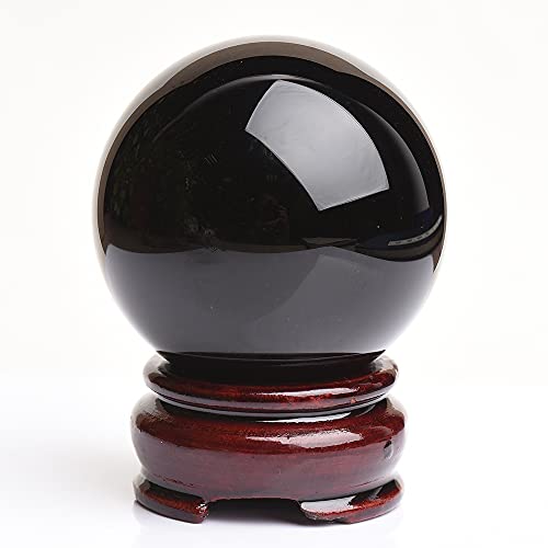 - كرة كريستال من الزجاج البركاني 2.4 انش/60 ملم، تأتي مع حامل خشبي. المواد: كرة كريستال من الزجاج البركاني الأسود الطبيعي الأصلي
