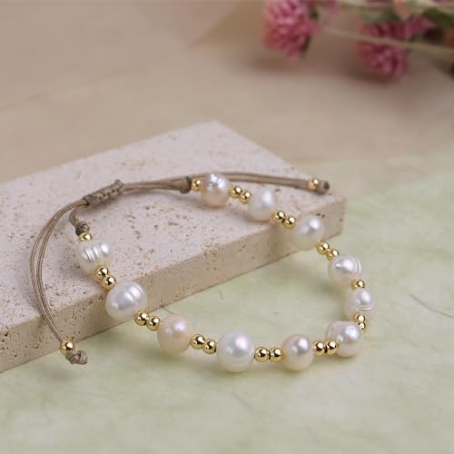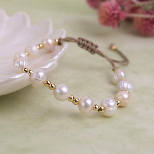 Agriajun - أساور صداقة من اجرياجون بنمط بوهو باروك من اللؤلؤ للنساء والفتيات بدلاية على شكل قلب ونجمة مصنوعة يدويًا بحبل قابل للتعديل وخرز ذهبي قابل للتكديس، مجوهرات للهدايا