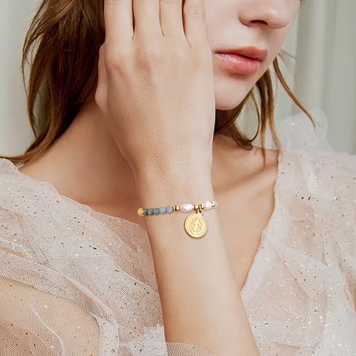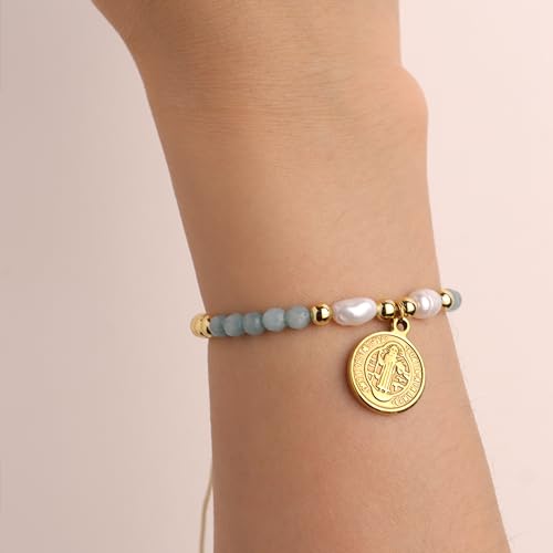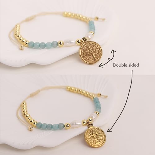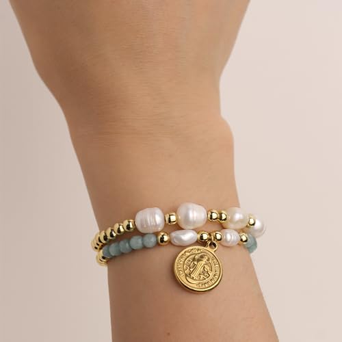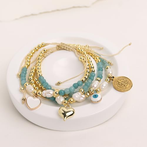Agriajun - أساور الصداقة بنمط بوهو مزينة باللؤلؤ للنساء والبنات من اجرياجون مصنوعة يدويًا وقابلة للتعديل مع كرات ذهبية الأحجار الطبيعية سوار بوهيمي قابل للتكديس هدية مجوهرات