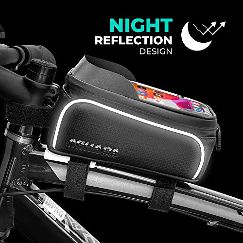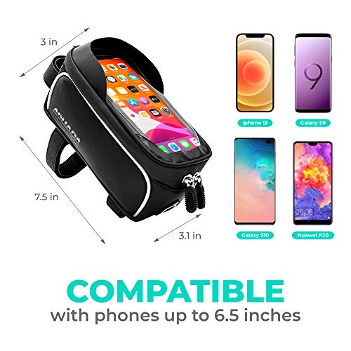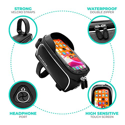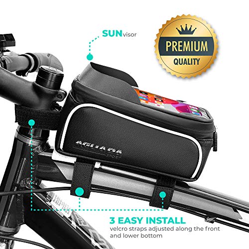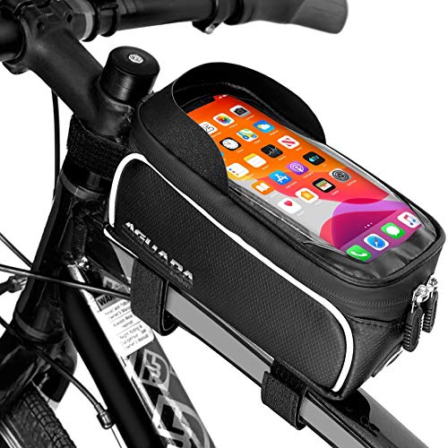 Aguada Sport - شنطة صلبة أمامية للدراجة - مزودة بأشرطة فيلكرو متينة تثبت على المقود - مقاومة للماء - حامل موبايل للدراجة الجبلية بشاشة تعمل باللمس لشاشات الموبايل أقل من 6.5 بوصة من اجوادا