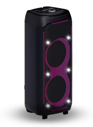Generic - مكبر صوت بلوتوث محمول بعجلات AH-10800 100W ار ام اس، مضخم صوت مزدوج 25 سم بإضاءة ليد USB/ اس دي/ اف ام/ بي تي وجهاز تحكم عن بعد بأولوية للميكروفون وبطارية قابلة لإعادة الشحن