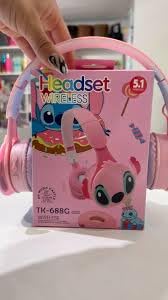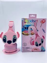 Generic - AH-806 سماعات رأس لاسلكية للأطفال بتصميم ستيتش, بلوتوث 5.2, وردي وأزرق, بطارية 400 مللي أمبير, مع منفذ بطاقة TF ومنفذ 3.5 ملم, وقت تشغيل 10 ساعات