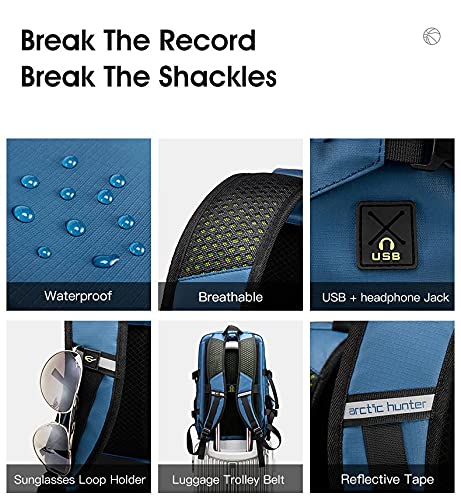 Arctic Hunter - شنطة ظهر لاب توب 15.6 بوصة، متعددة الوظائف، شنطة ظهر لانشطة التسلق في الخارج، شنطة مدرسية مقاومة للماء - اللون رمادي من اركتيك هانتر