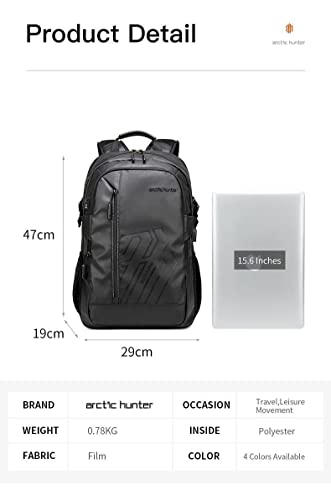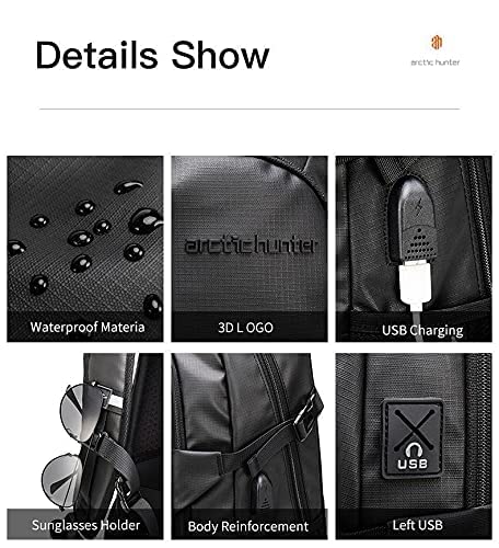 Arctic Hunter - شنطة ظهر للرجال خفيفة الوزن مقاس 15.6 بوصة متعددة الوظائف وبسعة كبيرة وتصميم مقاوم للماء من اركتيك هانتر - اسود
