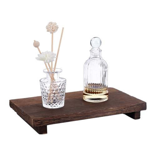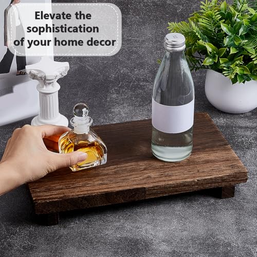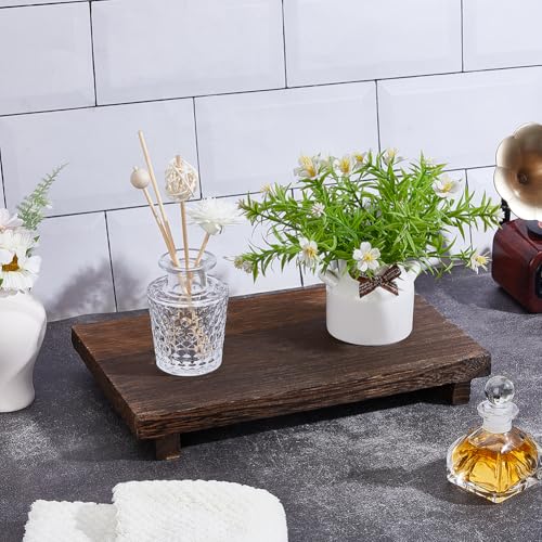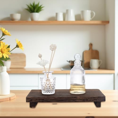 AHANDMAKER - ايه هاند ميكر صينية رفع خشبية، حامل بقاعدة ريفية، صينية خشبية صغيرة مصنوعة يدويا لمنزل المزرعة، حامل رافع خشبي للمطبخ والحمام والترابيزة وديكور النباتات والشموع والمزهريات، 11.8 × 7 انش