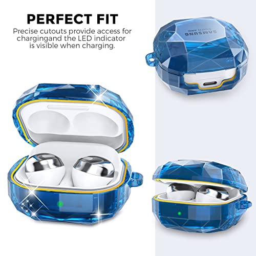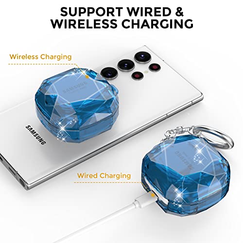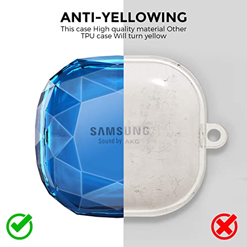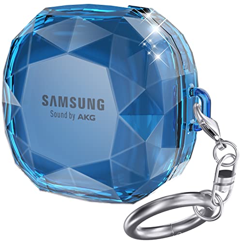 AHASTYLE - جراب كريستال لسامسونج جالاكسي بادز لايف وجالاكسي برو 2 - من اها ستايل صلب ماص للصدمات مع حلقة مفاتيح ازرق شفاف