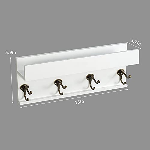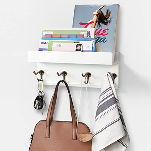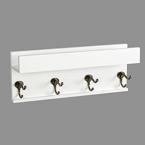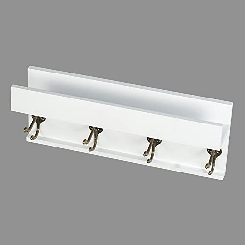 AHDECOR - حامل صور من الخشبي بخطافات للمعاطف اي اتش ديكور يثبت على الحائط رف عرض لديكور حائط المنزل مفروك بالزيت أبيض