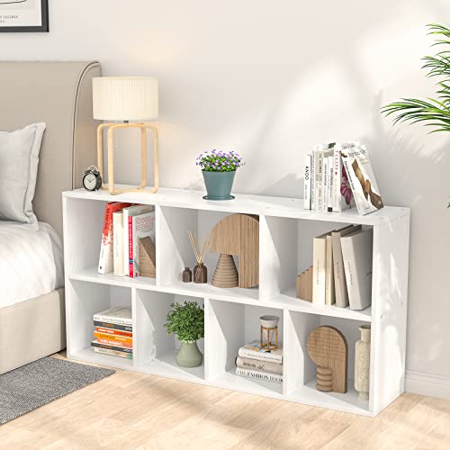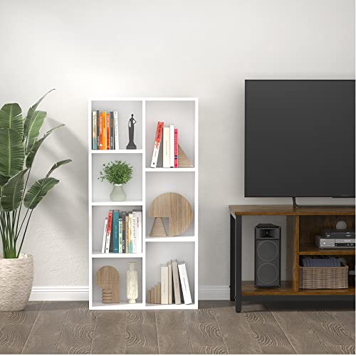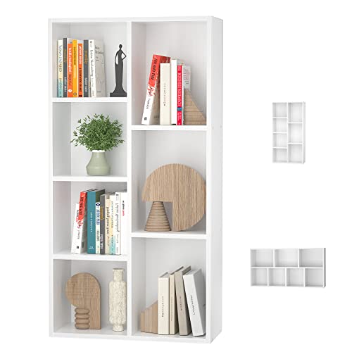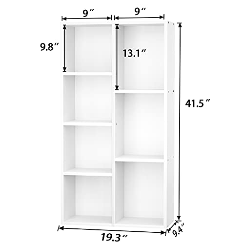 Aheaplus - خزانة كتب برفوف تخزين، منظم بـ 7 مكعبات، رف كتب للعرض، حجرات رفوف مكعبة، أرفف كتب خشبية مفتوحة قائمة على الأرض للاستخدام في المكتب أو المنزل أو المدرسة، رف عرض للأقراص المدمجة، والمجلات، والكتب من