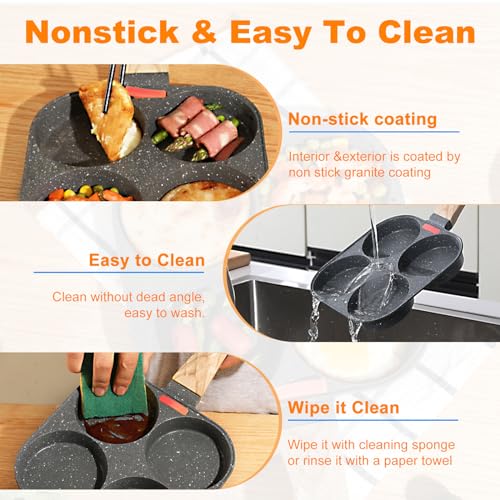 - 【تصميم مطور بـ 4 أكواب】تستخدم طاسة البيض الصغيرة خاصتنا تصميمًا بأربع فتحات، وهو مثالي لطهي الاومليت واللحم المقدد والبرجر والفطائر وأي وصفة مختلفة أخرى تفضلها لتقديمها في إفطارك اليومي. تجعل الطبخ أسرع وأسهل، مما يوفر وقتك بشكل كبير عند تناول الإفطار.