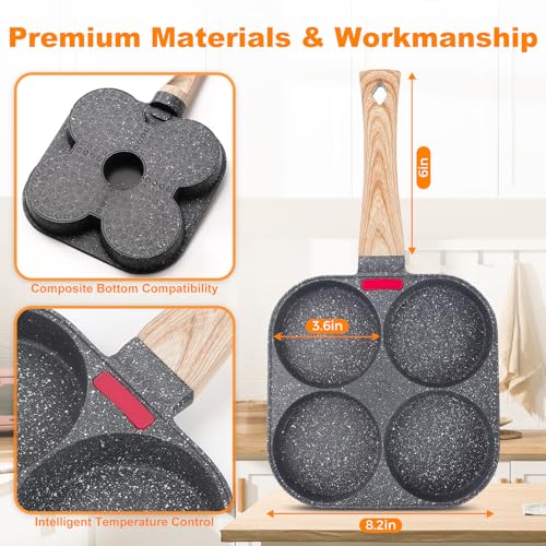 AHFLRITO - طاسة بيض من 4 أكواب غير لاصقة من ايه اتش فلريتو، طاسة بان كيك لتحضير إفطار صحي، طاسة اومليت من الألومنيوم، مقلاة بيض صغيرة سهلة التنظيف، طاسة قلي بيض مناسبة لموقد الغاز والطهي بالحث