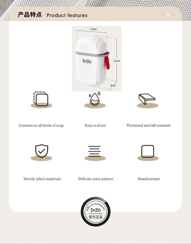 - 【Size 】 The size of the soap box is about 7.5*4*11.5CM, which is large enough to fit different soaps, and the standard appearance is also portable.