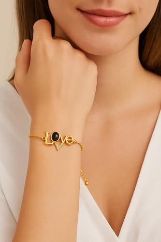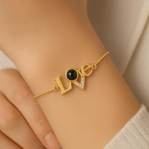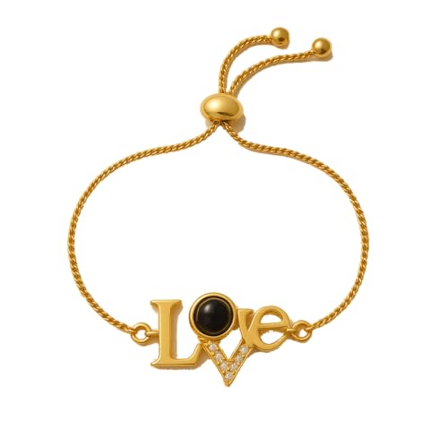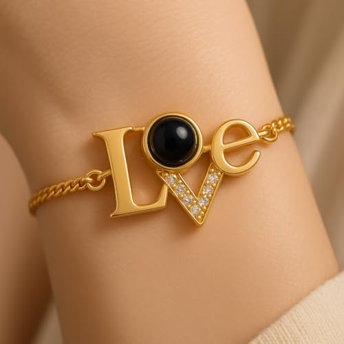 Generic - انسيال نسائي ذهبي بكلمة LOVE – بحبك بكل اللغات وفصوص براقة | إكسسوار أنيق هدية رومانسية من أحمد & محمد