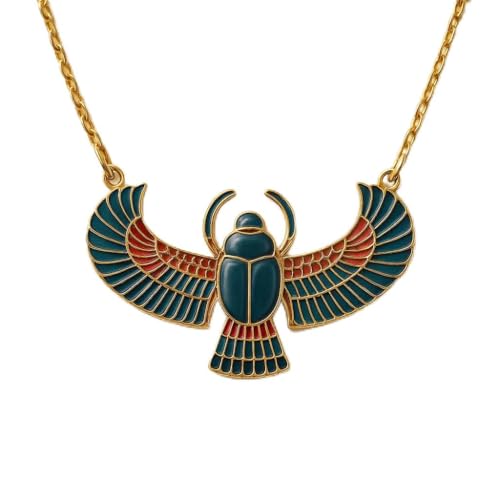 Generic - قلادات مصرية فاخرة، قلادة فرعونية ذهبية مع مفتاح الحياة وصقر حورس وكليوباترا، تصميم هيروغليفي مطلي بالمينا الملونة من احمد & محمد
