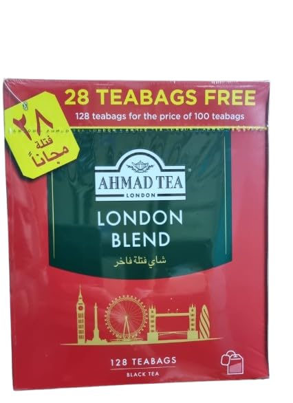- أكياس شاي لندن بليند من شاي أحمد، 100 كيس + 28 كيس شاي مجانا