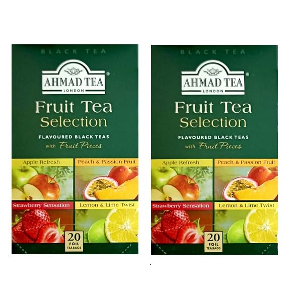 Generic - شاي بنكهة مزيج الفواكه من احمد تي مع قطع فواكه، مجموعة من 40 كيس فويل
