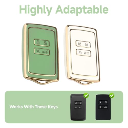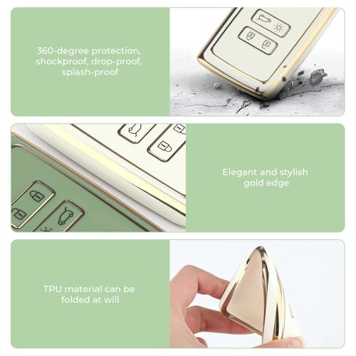 AHRLIC - غطاء مفتاح فوب للسيارة من البولي يوريثين المقاوم للحرارة، غطاء مقاوم للصدمات والرذاذ باللونين الأخضر والأبيض مع حواف بلون ذهبي من اهرليك، عبوة من قطعتين