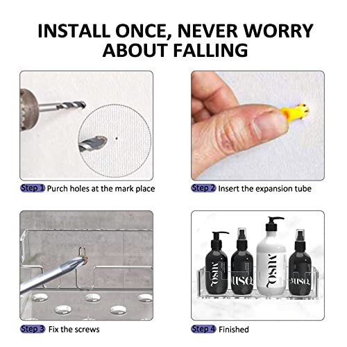 - 【ضمان عدم الصدأ مدى الحياة】مصنوعة من الاكريليك الممتاز، لذلك فإن رفوف الحمام مقاومة للصدأ وسهلة التنظيف. لمسة نهائية من الاكريليك الشفاف تكمل أي ديكور للاستحمام تقريبًا.