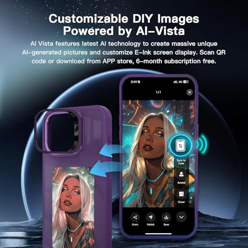 - 【استخدام تقنية جديدة】جراب موبايل مع شاشة صور تستخدم لنقل محتوى العرض إلى شاشة الحبر في جراب الآيفون، مع استهلاك منخفض للطاقة. بعد اكتمال عملية النقل، لا يتم استهلاك أي طاقة. حتى إذا تم إيقاف تشغيل الموبايل أو إزالة جراب آيفون، فلا يزال من الممكن عرض الصورة بشكل دائم.