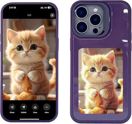 Generic - جراب موبايل بتقنية الاتصال قريب المدى بشاشة حبر ذكية مع حماية بتقنية الذكاء الاصطناعي لسلسلة آيفون، صورة شاشة الحبر بألوان كاملة من اي-اينك - (آيفون 13 برو ماكس) أرجواني