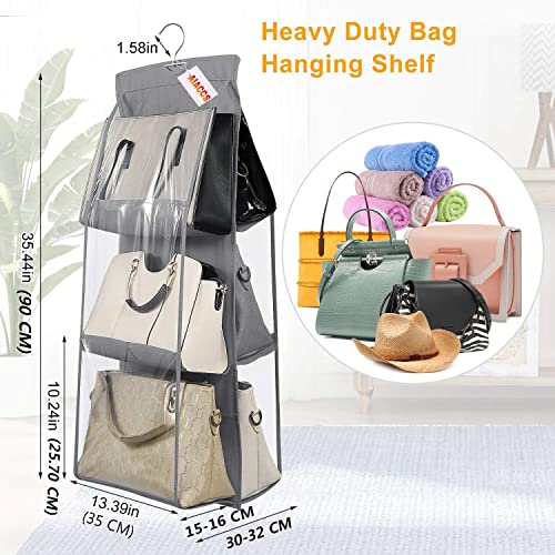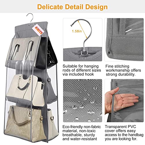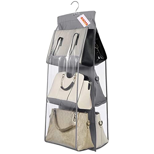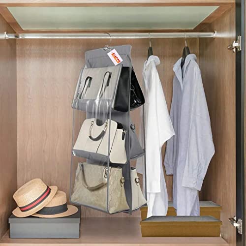 AIACCS - منظم شنط يد معلق قابل للطي بـ6 جيوب للتخزين للنساء من اياكس تخزين شفاف كبير رمادي غير منسوج .