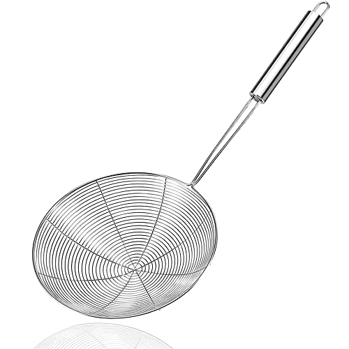 Aiareozy - ملعقة مقشدة دقيقة من الستانلس ستيل مقاس 6.1 انش من اياروزي، ملعقة قشط من الستانلس ستيل للمطبخ، مغرفة مصفاة عنكبوتية لملحقات المقلاة، فلتر بقايا الدهون ورغوة الشحوم