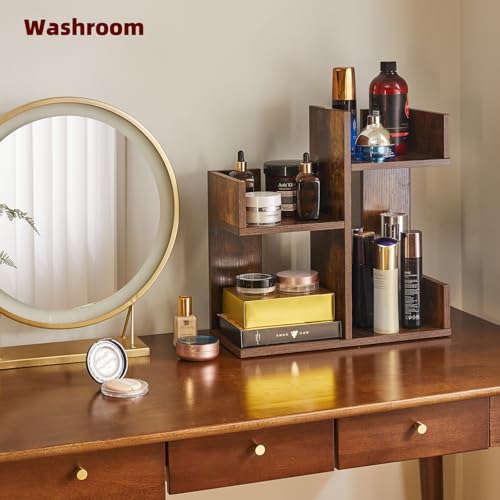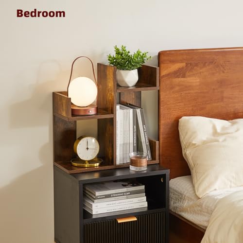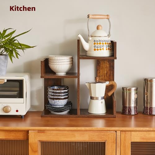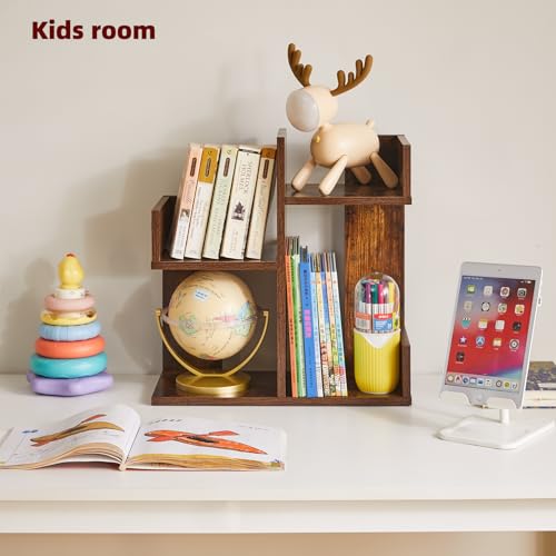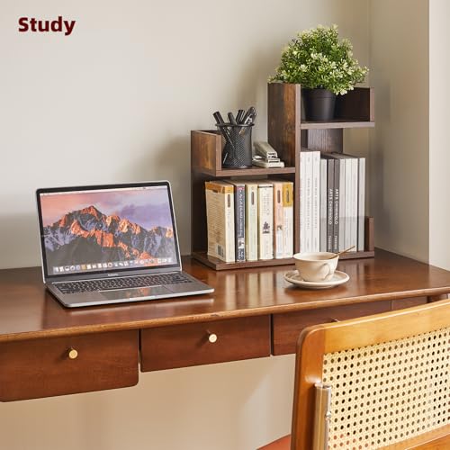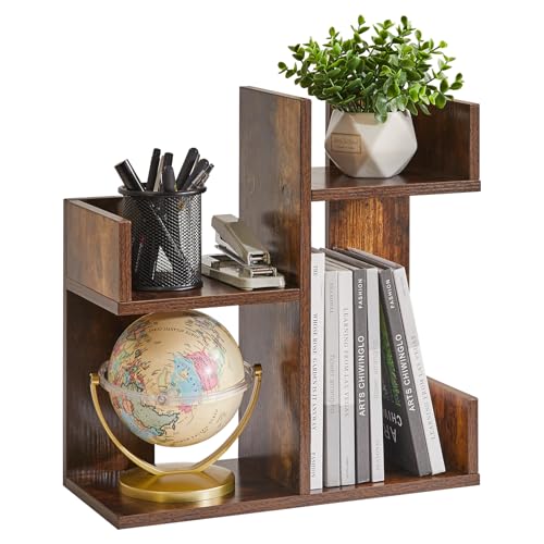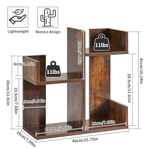 Aibiju - رف عرض الكتب من ايبيجو، منظم مكتب صغير، منظم تخزين لسطح المكتب، رف تخزين كتب الطبخ، رف منضدة المطبخ، رف نباتات لسطح الطاولة، بني ريفي YD-DSR002H