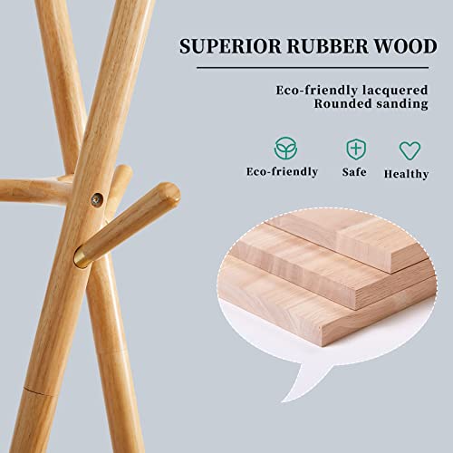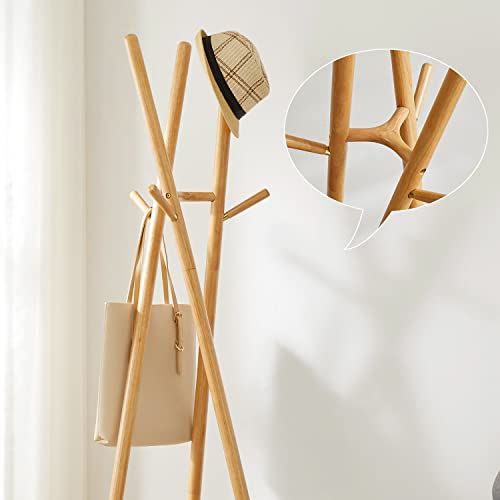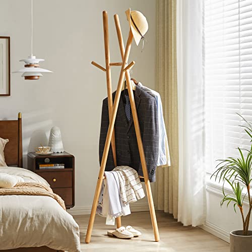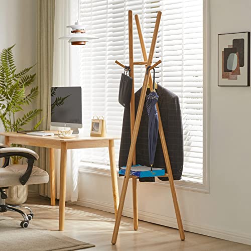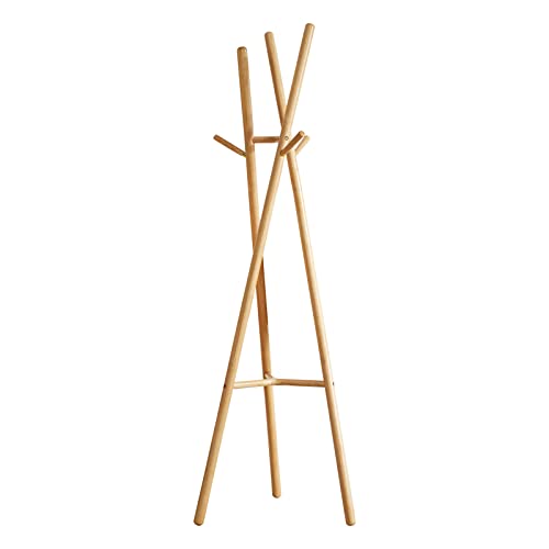 Aibiju - حامل معاطف خشبي من ايبيجو شجرة ملابس مع خطافات قاعة قائمة بذاتها بشكل هندسي للملابس والبدلات والقبعات والحقائب والمظلات في المدخل والمنزل والمكتب طبيعي YD-TS264 خشب شجر المطاط ايبجو