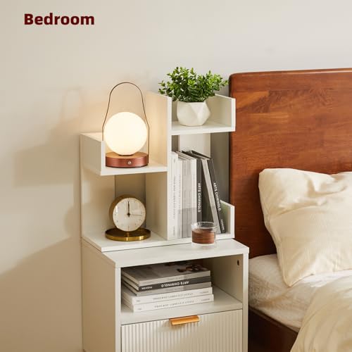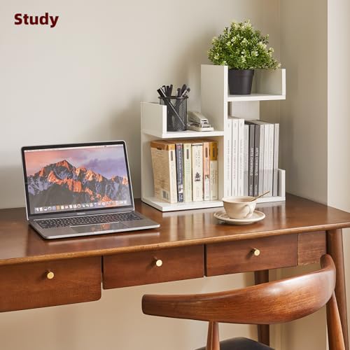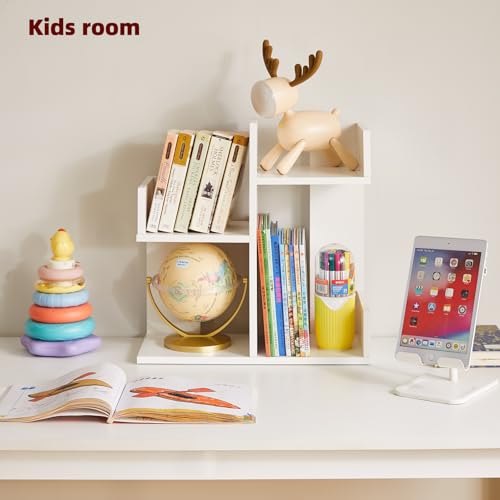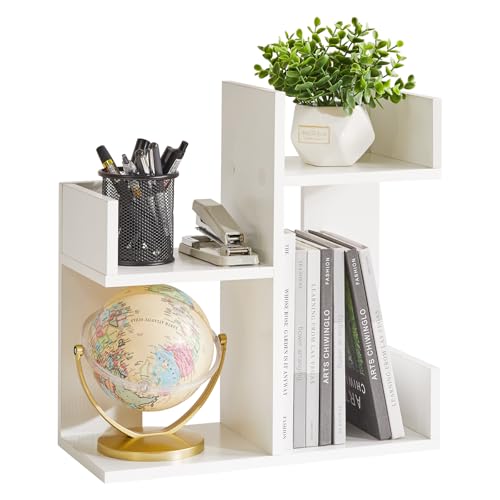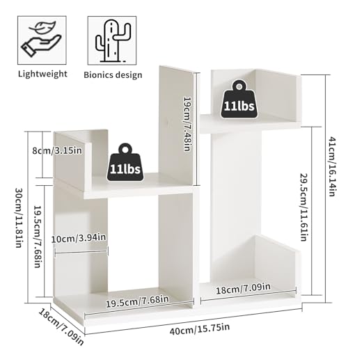Aibiju - رف كتب صغير YD-DSR002W ومنظم مكتب رف كتب على شكل شجرة بطابقين، رف كتب على شكل صبار، منظم كتب خشبي صغير للنباتات، من ايبيجو، أبيض