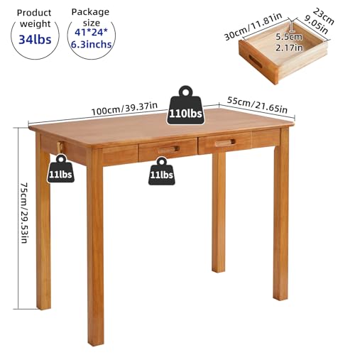 Aibiju - مكتب كتابة خشبي YD-WD02N مع أدراج وخطافات من ايبيجو، طاولة كمبيوتر صغيرة، 99 × 55.88 × 76.2 سم، مكتب عمل، مكتب دراسة، طاولة طعام خشبية صغيرة، لون خشب الكرز