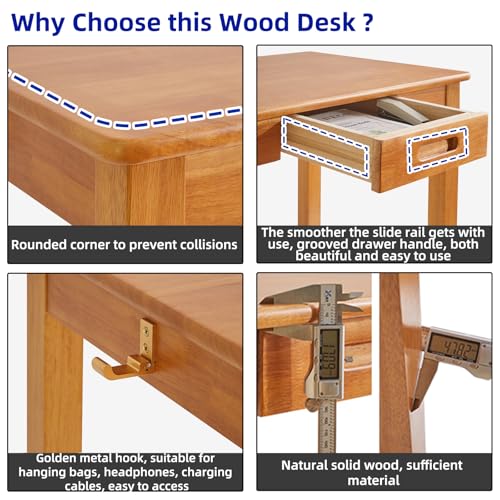 - Mid Century Modern Desk: Sleek wood writing desk with drawer and foldable hooks, crafted of solid rubberwood with warm cherry finish, clean lines and straight legs offer classic business style