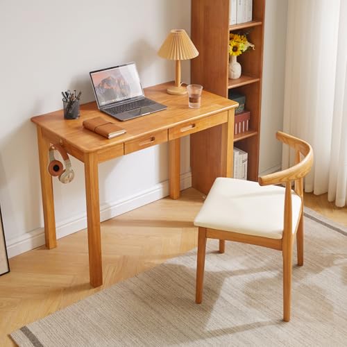 Aibiju - مكتب كمبيوتر من الخشب الطبيعي YD-WD02N من ايبيجو، عرض 39.4 × عمق 21.7 × ارتفاع 29.5 انش (100 × 55 × 75 سم)، مكتب كتابة مع ادراج، طاولة طعام، متوافق مع ذراع الشاشة الخشبي، خطاف قابل للطي